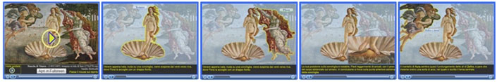 La presentazione avviene con l'ausilio della descrizione vocale dell'Opera, in cui vengono evidenziate sfumature e particolari, utilizzando opportuni accorgimenti multimediali utili ad una esposizione più chiara.